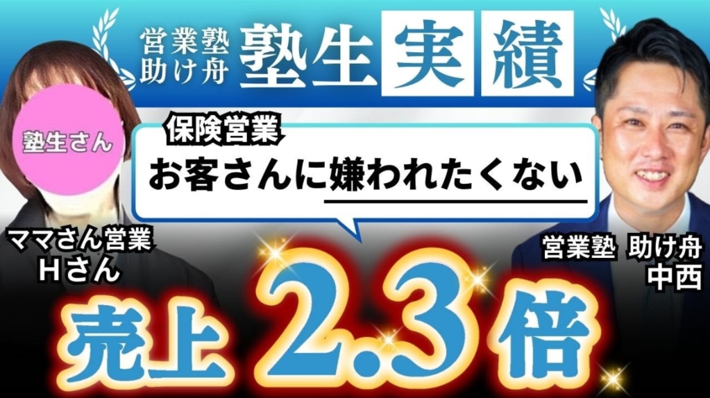 【売上2.3倍】介護と両立しながら月5000万 ”嫌われない営業”は別世界だった|営業塾 助け舟 塾生さんインタビュー生命保険営業塾生さんの声口コミ相談者さんインタビュー2025-10-18 01:00中西 龍一