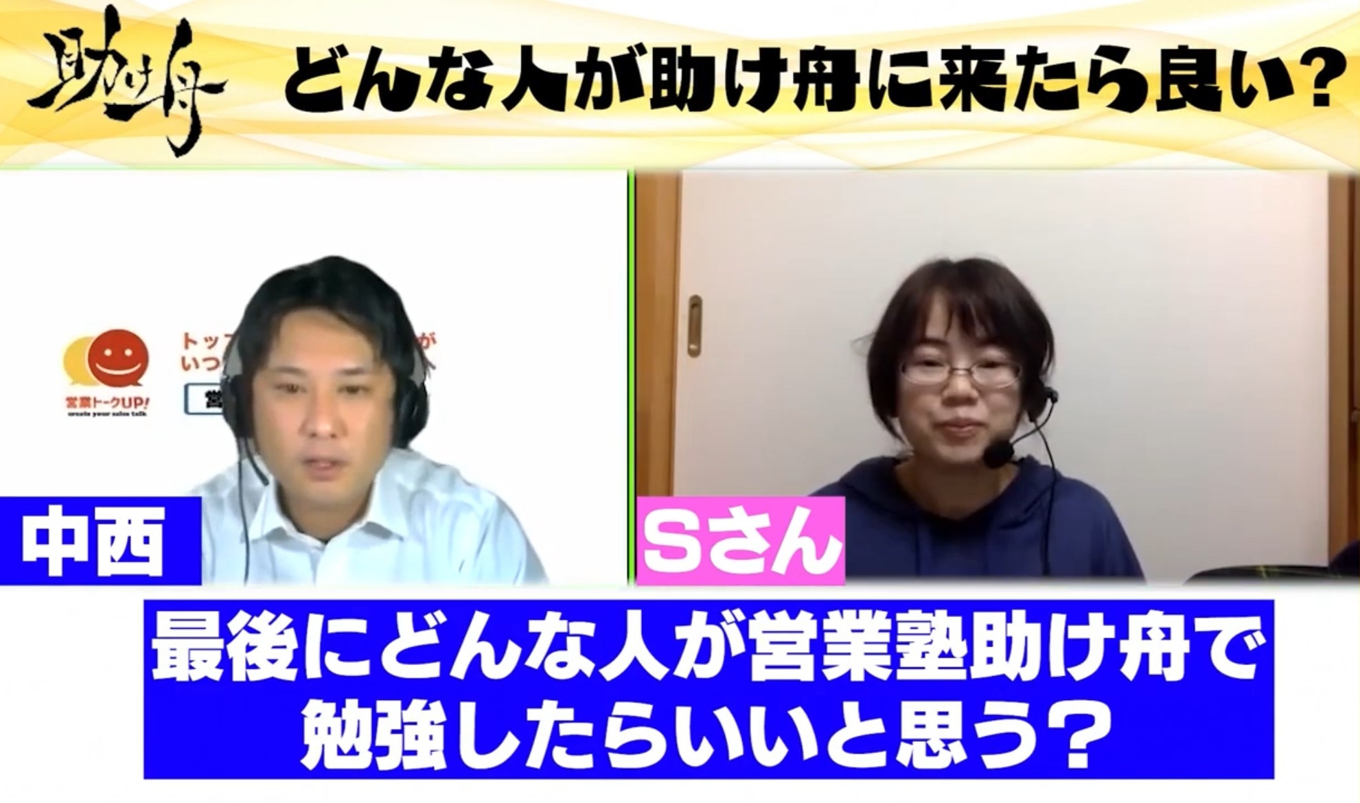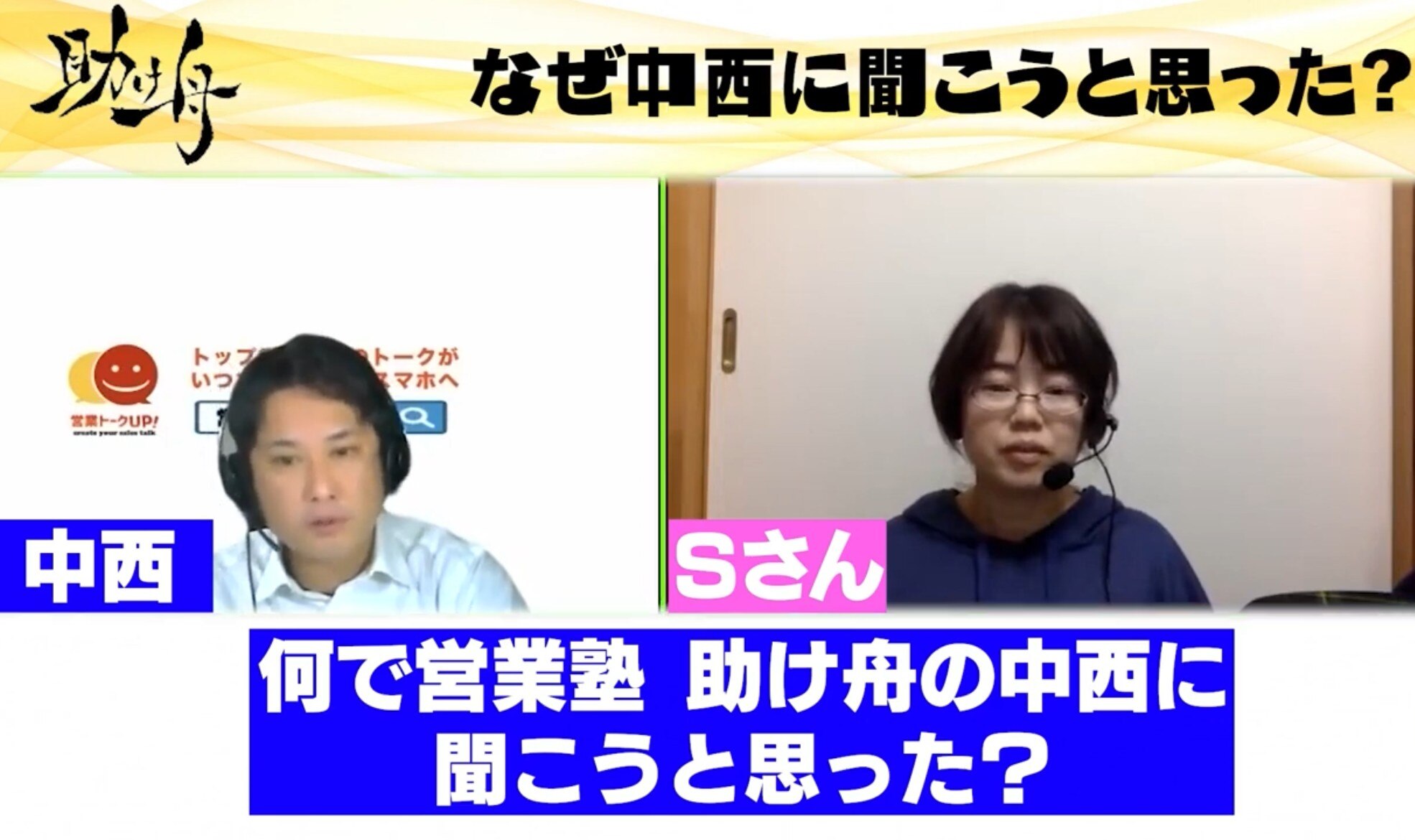 よろしくお願いします。Sさんは、営業塾 助け舟に入って
