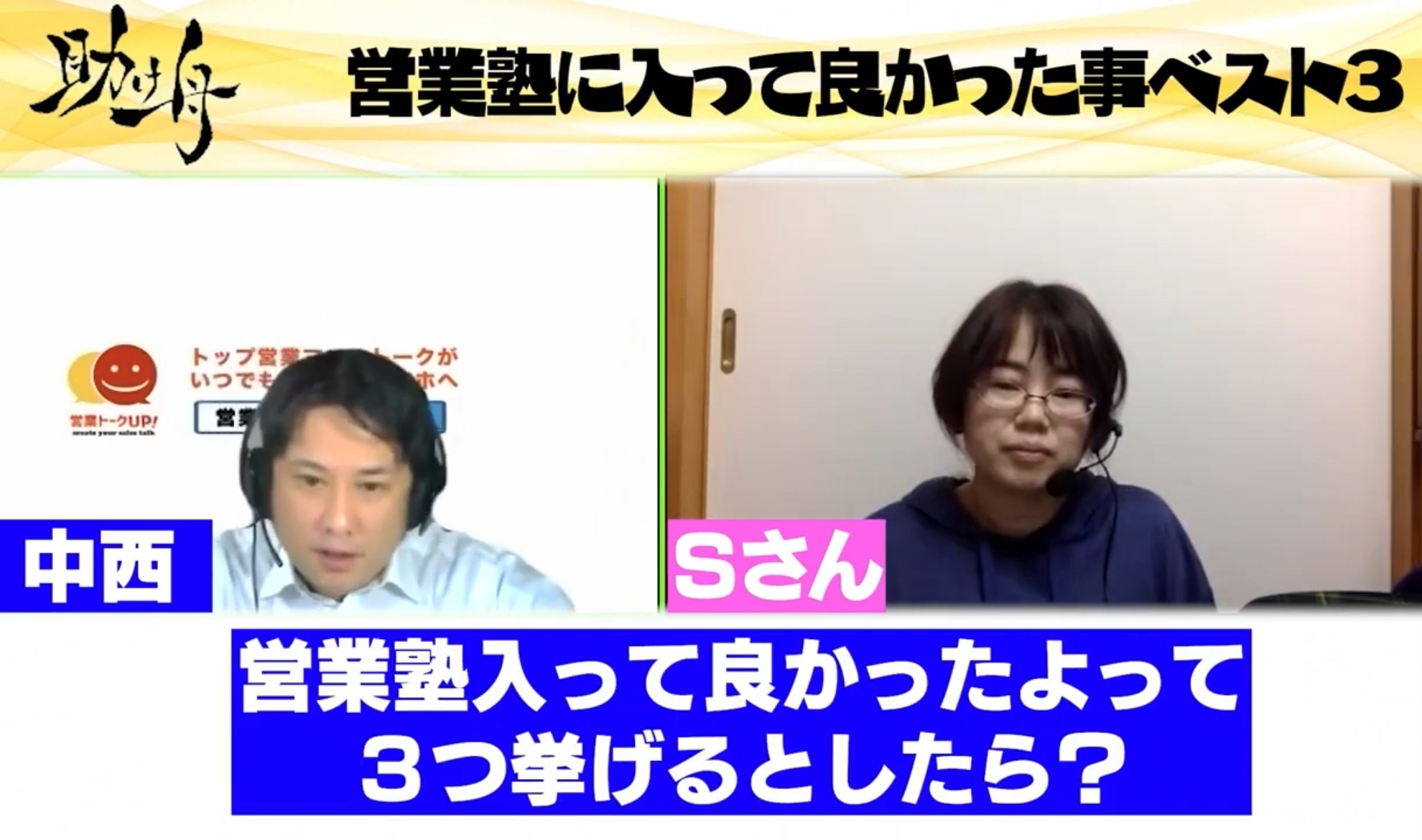 Sさんのインタビューです。Sさんは、営業塾に入ることを決めた段階でも、